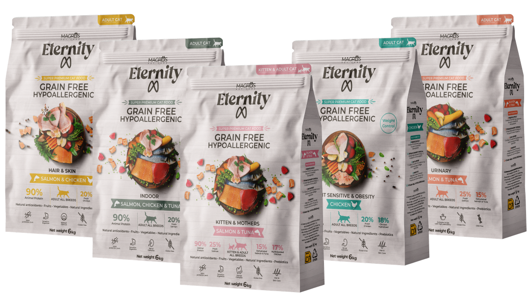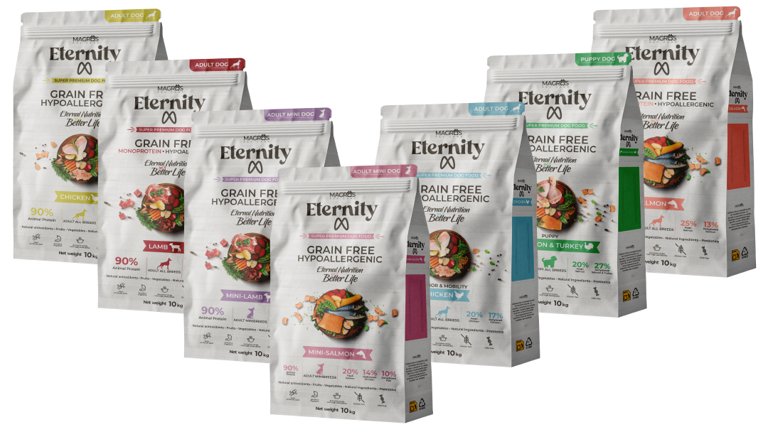 With Magros Eternity, your pet enjoys delicious, grain-free nutrition that not only nourishes but also protects and strengthens from within.