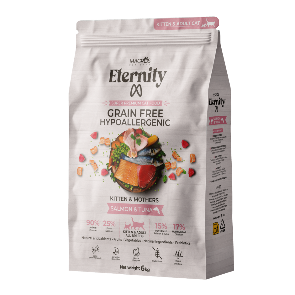 Fish (fresh salmon* min. 25%, dehydrated salmon and tuna min. 15%), chicken hydrolysate (min. 17%), potato, legumes, chicken fat, Saccharomyces cerevisiae brewer’s yeast (source of nucleotides, β-glucans and MOS), hydrolyzed chicken liver, vegetables (chicory, FOS, carrot, green beans, turnip), minerals, lignocellulose, chondroprotective complex (glucosamine hydrochloride, chondroitin sulfate, MSM, green-lipped mussel Perna canaliculus), botanical ingredients (calendula, sage, fenugreek, dill, thyme, rosehip), Yucca schidigera extract, plant extracts (red fruits, citrus fruits, milk thistle seeds, green tea seeds, rosemary.
